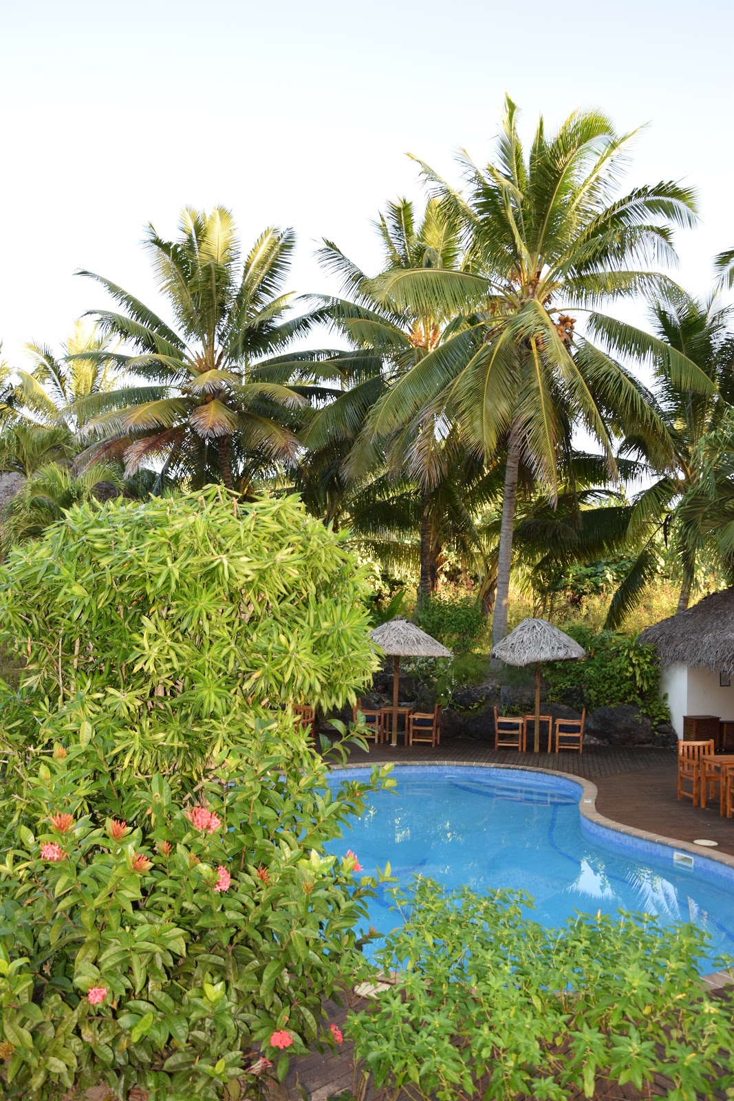 Aunque estaba muy cerca de Muri Beach, la zona más "aclamada" de Rarotonga, estaba un poco descuidado y no te podías bañar en marea baja. Por la noche todo a oscuras, aunque la habitación que nos dieron era un 1er piso, las vistas eran mejores y tenía una enorme terraza en la que pudimos degustar relajadamente otro de los blancos que compramos en las bodegas de Marlborough Sounds, NZ. Tuvimos que comprar unos bonos de wifi, pero era tan lento…